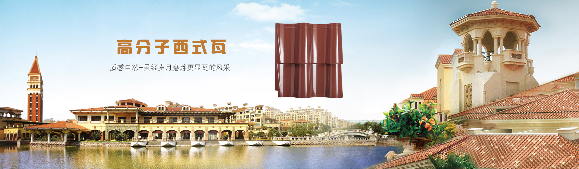 公司采用高分子材料高溫高壓模具成型的裝飾屋面瓦系列:仿古瓦、筒瓦、小青瓦、琉璃瓦、西式瓦等,集防水、隔熱、裝飾功能于一體。強度高、重量輕,安裝簡便快捷,不需要做防水層。耐候性好,使用壽命長、終身不漏水、不維修,徹底克服了傳統(tǒng)燒結瓦易松動、裂紋而滲漏的缺陷,是現(xiàn)代中高端建筑理想的用瓦選擇。